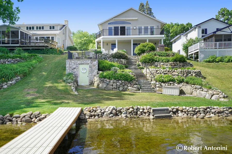 This is an amazing opportunity for anyone looking for a private, all sports lake, waterfront home/cottage that has been completely remodeled. There is 50 feet of waterfront with a sandy and firm bottom. The home offers an additional 16x24 garage across the street for storing all the water toys, bikes, car, boat, etc. Main floor offers; large great room that is perfect for todays lifestyle with stunning views of the lake, kitchen with two refrigerators, master suite, laundry and additional full bath. Lower level has second bedroom, full bath, and an additional bonus/bedroom. The walk out patio with built in oven offers views and access to the lake. All offers due by July 2, 2021 at Noon.'