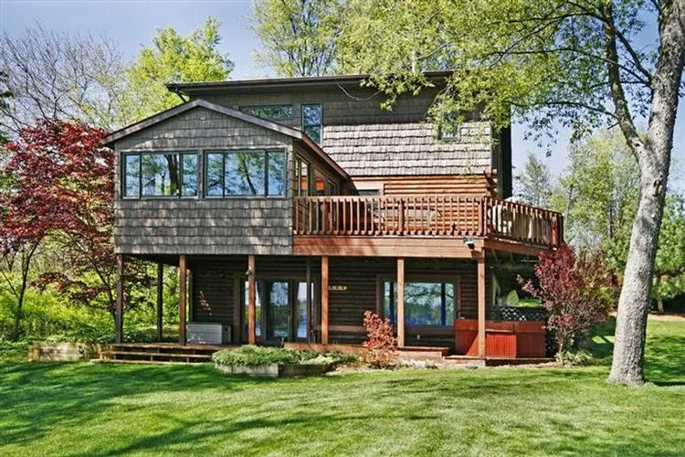 A hidden Gem on Pine Lake! A Log Home on 3.3 rolling, wooded acres & 67' of private Pine Lake Frontage. This Log home features all new stainless steel kitchen appliances, lovely 3 season room w/3 walls of windows facing the lake & woods, lakeside dining area, great room w/gas stove , bedroom & full bath. On the upper level is the master bedroom & bath along w/large loft area & closet that can be used as an office or 3rd bedroom. The finished walkout level has a family room, wet bar, full bath & laundry room. From the family room walk out on to the deck & enjoy relaxing in your own hot tub! A two story,3 car garage has ample room for storing your boat, lake toys & yard tools. An added bonus is the heated out building, ideal for the craftsman or artist as a workshop or studio. It would make a perfect guest house. Parcel 08-12-007-006-81 included.