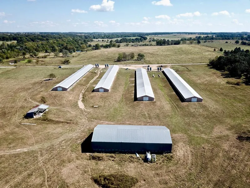Here's a great business opportunity to own an operational turkey farm in southern Missouri. This 43 +/- acre turkey farm is located approximately 15 minutes north of Cassville, Missouri. Currently the property has a Cargill Contract and is equipped with six steel turkey houses all measuring 40'x400' and totaling 96,000 square feet. The turkey operation was made more operation friendly as it was converted to all-in, all-out houses. The turkey houses are controlled by Chore-Time controller systems. They have Ziggity waterlines and tube heat in most houses, and the remaining have quad heaters. This property offers propane heat, two water wells, and two generators for backup power. Also, included on the farm is one mobile home that measures approximately 1,728 square foot with 3 bedrooms, 2 baths, and has a 768 square foot carport, central HVAC and a 12'x18' shed. In addition to the six turk...