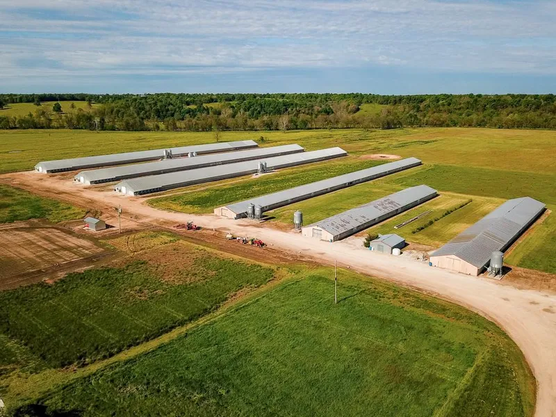 Midwest Land Group is proud to present this turn-key turkey production farm in northwestern Barry County. The centerpiece of this farm is the trio of 55'x600’ tunnel style barns with curtain sidewalls. These barns were built in 2017, along with a 50'x200’ stacking shed, new well, and a well house/generator barn. Rotem Platinum Plus control panels automate the feeding, heating, and ventilation systems, and put full control and information at the tips of your fingers with phone app interface capability. These three newer barns have 11 years remaining on a growing contract that averages 2.5 flocks per barn per year.