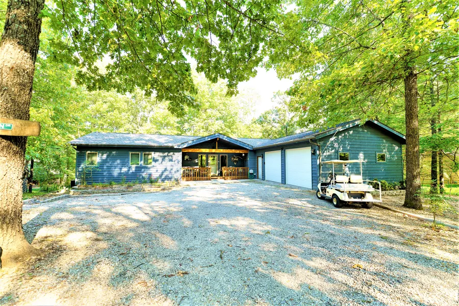 Wonderful 4 bedroom 2 1/2 bath one-owner lakefront home close to Shell Knob. Price includes a 10 x 20 slip with lift within walking distance of the home. Home is a Lindal cedar home and features vaulted ceilings throughout. Beautiful cedar beams and ceiling in the living room. The main floor features the master bedroom and office with 3 additional bedrooms and family room downstairs. The wooded lakefront lot is over 1/2 acre with a full deck along the back of the home. Screened in porch off the kitchen dining area with access to the deck. 2004 Lowe 20 ft pontoon and golf cart included with an acceptable offer. Some home furnishings are negotiable. Come take a look at this one, very unique property with an amazing setting!