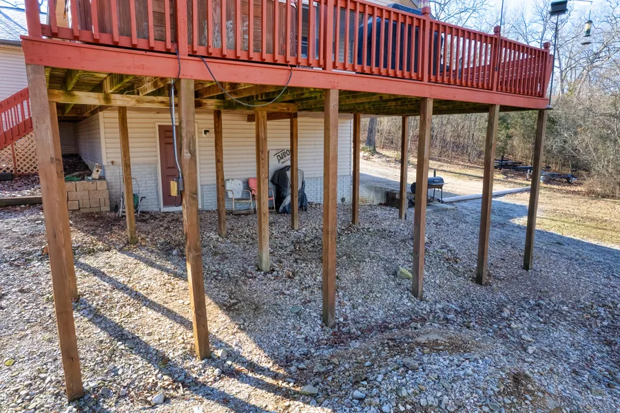 The total package! This lake front home is a rare find. Five bedrooms (2 nonconforming) 3 1/2 bathrooms, vaulted living room with large windows, family room in basement, open dining and kitchen area and a screened porch with a 12x 28 deck for your outside dining enjoyment. Need storage? The home has a two-car attached garage and a 30 x 48 three bay shop. Enjoy the quiet side of Table Rock Lake. Need a boat slip? 10x 24 with a lift is offered for more $$$. Move in before boating season.