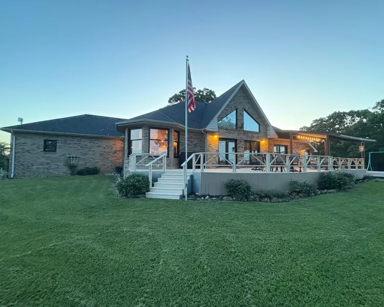 Experience supremely private, exceptional country living w/all of the modern comforts in this 3,800 sq. ft. custom-designed home (2,800 finished) perfectly set on 6.41 ac +/ (NO RESTRICTIONS) mixed gently rolling pasture land w/mature towering hardwoods. Enjoy breathtaking eastern-facing views from the expansive deck, where the Primary Suite, Living Room, Dining, & Kitchen all have direct access. Property Highlights Include: 6.41 unrestricted acres, 36' x 48' shop & 4-stall horse barn (w/water & electric)50-amp RV hookup & cemented hot tub pad with 220 outlet. 600 sq. ft. of deck space (256 sq. ft. covered) w/wide-open views. Hardwood floors throughout, anchored by a cozy propane gas fireplace. Spacious kitchen w/double ovens, 5-burner propane cooktop (electric hookup still available), built-in microwave & new sink/faucet. Primary suite & guest bedrooms w/hardwood flooring. 800+ sq. ft. of climate-controlled unfinished storage/additional living space, in-law suite or more bedrooms. Renovations & Upgrades2017 Include: Full electrical re-wire, water softener system, new lighting, primary suite remodel, new hardwoods, taller toilets, driveway gate alarm2021: Preventive French drain & sump pumps, 20' x 25' front porch deck, UV film on eastern windows, new garage doors & motors, new lower-level flooring2022: New propane 5-burner cooktop & vent2023: New roof on home & barn (30-yr shingles), skylight replacement, new kitchen sink & faucets. Location is super duper convenient: 3 min. to Flat Creek access for floating, 15 min. to Table Rock Lake access, 40 min. to Branson, and only 50 min. to Springfield. This property blends comfort, convenience, practicality, breathtaking sunrise mt. views, no restrictions & perfect for horse enthusiasts, hobby farmers, outdoor adventurers, or anyone seeking a peaceful retreat w/all of today's coveted HGTV upgrades. Saddle up & escape to the country & #tablerocklake (3rd party boat slips available). Don't forget to watch the video (o: