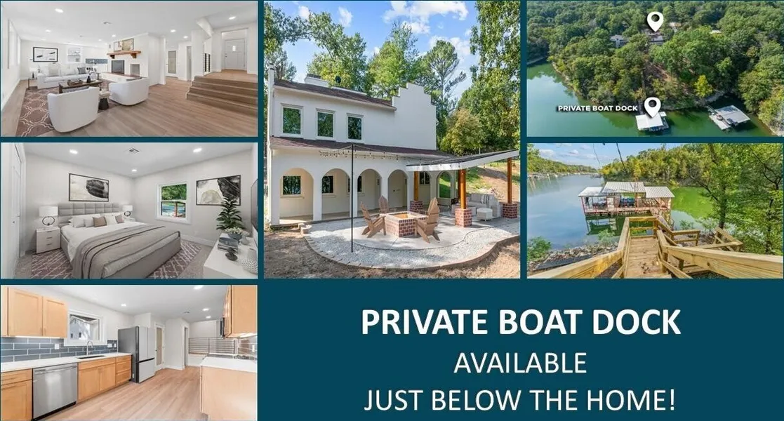 This beautifully remodeled lakefront, lake view home features 4 bedrooms and 3 bathrooms, complete with all-new PEX plumbing, electrical, sheetrock, and paint. The upper level includes a cozy living room with a large wood-burning fireplace and wall-to-wall windows that overlook the pristine waters of Table Rock Lake, making it the perfect spot to curl up with a warm cup of coffee on chilly mornings while enjoying the views. The spacious kitchen boasts an eat-in bar, modern appliances, new cabinets and sink, as well as a pantry for ample storage. Two upstairs bedrooms and a full bathroom are separated from the living area, providing a comfortable and private feel. The lower level offers an additional two bedrooms--one with an en-suite bathroom and the other featuring high ceilings and built-in bunk beds with a staircase leading to the top. This level also includes a laundry room and a sec...