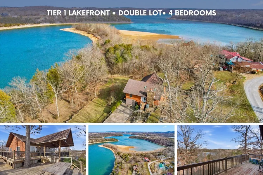 Discover Tier 1 lakefront living on the sparkling shores of Table Rock Lake at 19468 Farm Road 1187 in Eagle Rock, MO. Nestled on 1.04 acres with no restrictions, this furnished 4 bedroom, 2 bath cabin offers the perfect blend of privacy, comfort, and panoramic water views. Tucked on a dead end road just 4 minutes to Eagle Rock Marina, 12 minutes to Roaring River State Park, 14 minutes to Holiday Island, 24 minutes to Eureka Springs, and less than an hour to Kimberling City and Branson, this location delivers both seclusion and convenience. Step inside the lakefront cabin to a stunning great room with vaulted ceilings, skylights, exposed beams, and a rock fireplace. The spacious living area flows seamlessly into the kitchen featuring bar seating and an attached dining room with sliding door access to the deck, creating an ideal space for gathering. The main level includes two bedrooms and a full bathroom, while upstairs offers a perfect guest bedroom retreat. Downstairs, a second living room with deck access, wet bar, 4th bedroom, full bathroom, and laundry closet provide flexible space for guests and extended stays. Outdoor entertaining is effortless with a covered deck showcasing a vaulted ceiling and breathtaking panoramic lake views, plus a wraparound deck designed to soak in the waterfront setting. A covered storage area below adds convenience for lake gear and tools. With a new well and septic within the last eight years, this Tier 1 lakefront property is ready to enjoy and is being sold as-is. Whether as a full time residence, vacation getaway, or investment opportunity, this is a rare chance to own unrestricted lakefront property on Table Rock Lake.