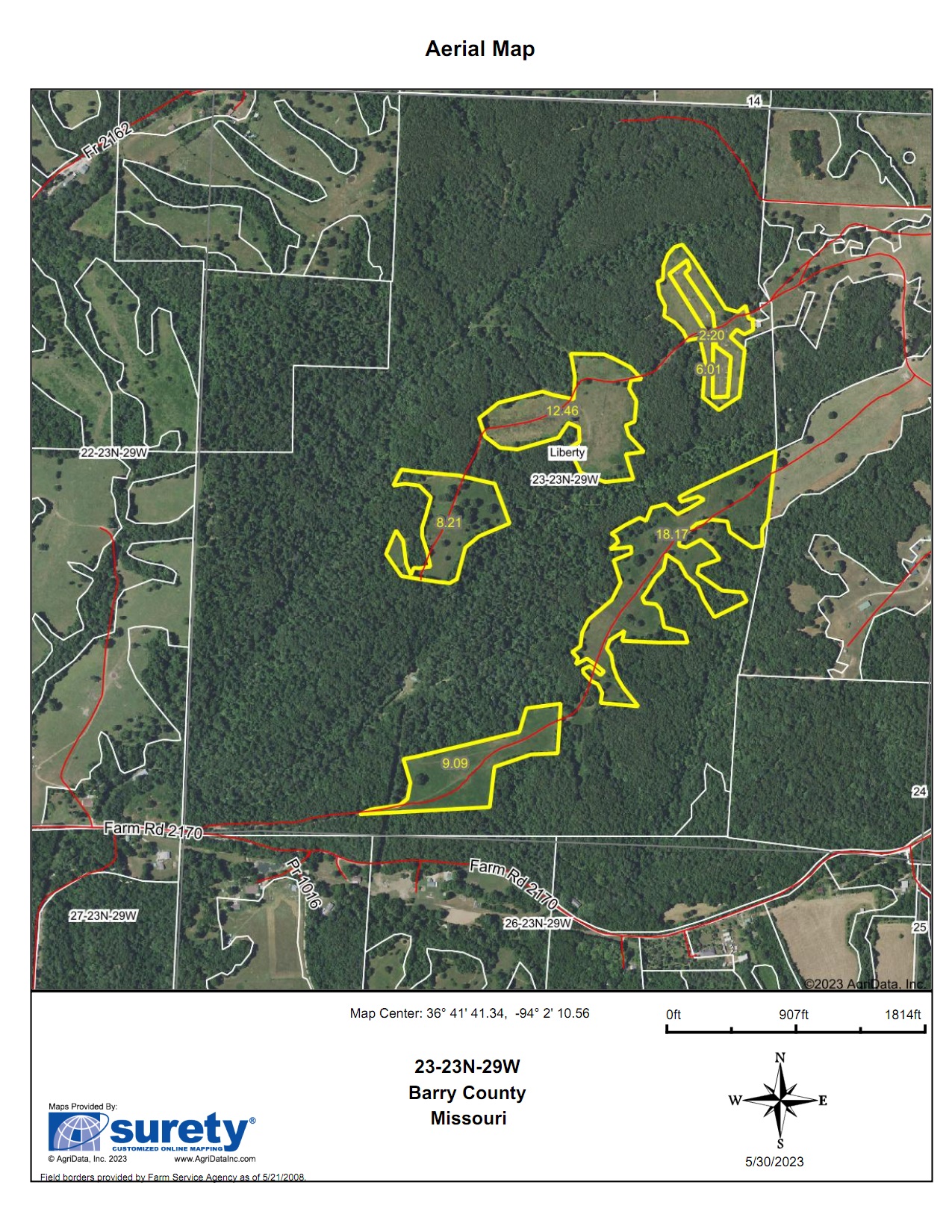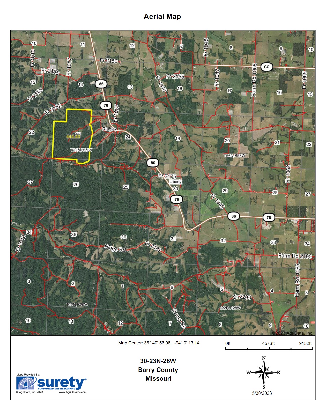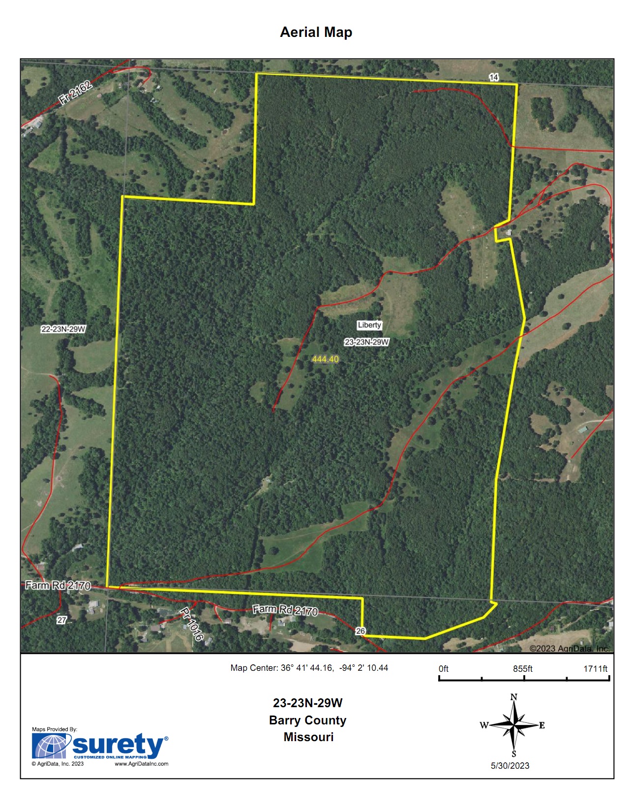 Hidden Springs Game Ranch the name says it all. Hidden just north of Farm Road 2170 this 444.4 acre parcel is a hunting oasis. The natural springs on the ranch offer good water for wildlife. The Hidden Springs Game Ranch was previously ran as a quality high fence hunting operation in SW Missouri with deer, elk, sheep, and bison hunts in the fall. The farm features several miles of 8' high fence all in good shape and would offer some depreciation to the new buyer. After 12 years of operation the Baker family has decided to sell the Hidden Springs Game Ranch. The close proximity to Table Rock Lake, Roaring River State Park, Branson, Springfield, Joplin and Bentonville, AR puts this farm in a great location. The ranch is currently not in operation and all licenses are expired. This leaves the new owners with 2 options. 1) Leave it alone and hunt it as is. From what we have been told the farm would be considered the same as any other property and all hunting would be under the rules and regulations of the Missouri Department of Conservation. 2) The new owners could apply for new licensing and continue as a high fence operation enjoying it personally or for business purposes. There is an old farm house on the property that could be fixed up for a hunting cabin or there are multiple spots to build a new one if desired. The trail system winding throughout this property is sure make for great access anywhere on the property. Whether hunting, ATV/UTV riding or horse riding this place has it all.