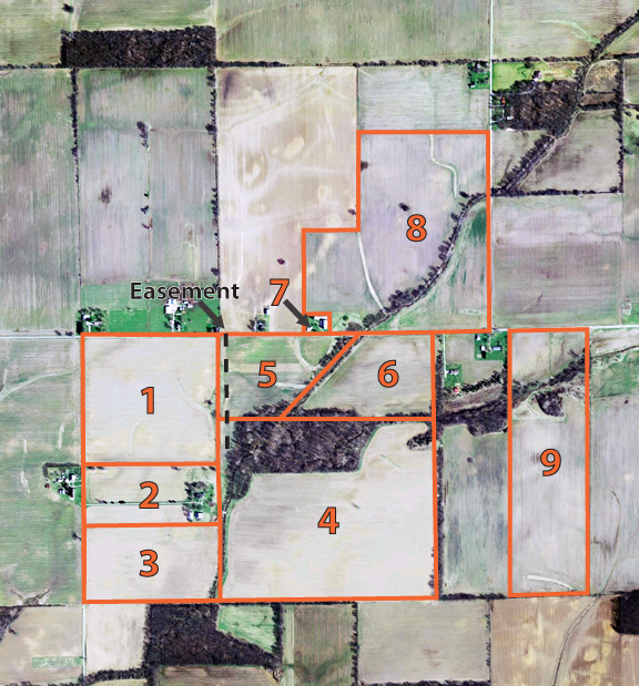 Tract 9: 49.6 Total Acres (39.6 tillable, 7.4 Woods, potential home site)