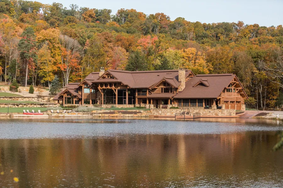 The finest property ever offered for sale in the state of Indiana, Hidden Hollow Ranch. At 20,000 square feet of rustic luxury, this home built of lodgepole pine from the Northern Rockies sits on 415 wooded acres with a 9 acre stocked lake. Elk, deer, and turkey are abundant on this licensed hunting preserve. Two-story waterfall and trout stream in the entry. Great room features 8700 gallon freshwater aquarium. Kitchen with exquisite finishes and hibachi grill with commercial-grade exhaust system. Six ensuite bedrooms with breathtaking views. Lower level includes bowling alley, game area, golf-simulator room, and lighted onyx bar. Guesthouse and large workshop on property. Less than an hour from Indianapolis International Airport.