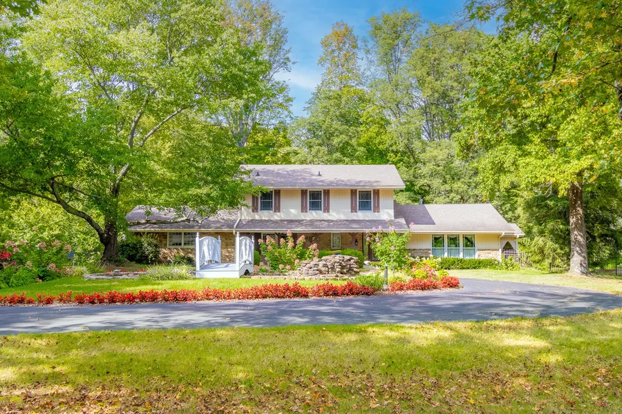 This is a very rare gem! Just minutes from Columbus, located on very private 4+ acres that feature an apple orchid of 90 apple trees and the property over looks the river. Spend peaceful time watching the tranquil waters flow. The home features 4 beds and 3 full baths; an updated kitchen; a home office with built-in desk system; a large primary suite with an updated attached bath; an inviting two story sun room on the rear; a double sided stone fireplace; multi-level decks; 2 car attached garage and a detached barn. Extensive landscaping that includes a fish pond and fountain. Other recent updates include most windows, dishwasher, a/c unit and more. Definitely a one of a kind property!