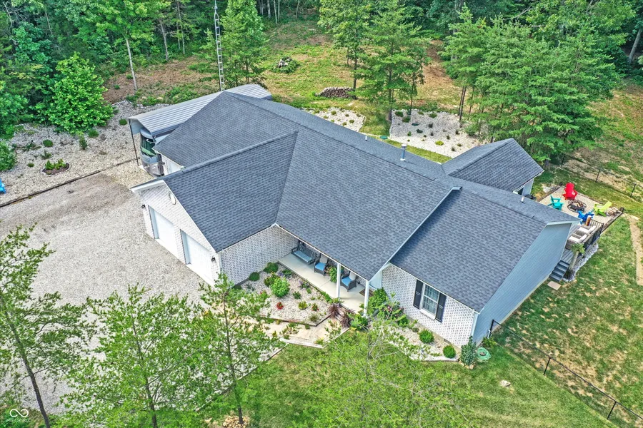 This lovely home is located in beautiful seclusion on 10 private, wooded acres that include a stocked one acre pond. A spacious and excellently maintained ranch home features a split bedroom layout; a primary suite with large walk in closet, full bath with a garden tub and separate shower; great room with vaulted ceiling and a gas log fireplace; a well designed kitchen with all kitchen appliances to remain; an attached 3 car garage; an RV carport with RV hookup; a 36x24 pole barn; a fire pit; and a maintenance free deck on the rear of the house. Recent updates include the rear deck and chain link fence in rear of house.
