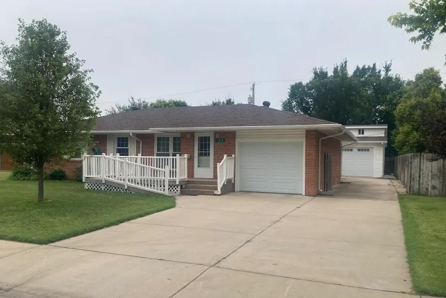 Come see this solid three bedroom and two bathroom brick home nestled in a desirable neighborhood. It is located a block away from Lincoln Elementary school, near several ball fields, and close to Veteran’s Park. The front entry has ramp access as you walk into the well-lit living room. Continue on into the kitchen and dining area or towards the three bedrooms located just off the living room. One of those bedrooms is a master with separate vanity area and its own bathroom. The large kitchen and dining area boasts laminate floors, a kitchen island and, ample custom-built storage. The dining area leads you to a big and bright family room with accent lighting and more custom-built storage. This room is large enough to be used as both an additional sitting area and rec room. Sliding doors give you access to large covered patio and well maintained back yard. This home has an extra long drive way, fenced in backyard, a covered patio, a large detached garage with shop, a garden shed, and front and backyard sprinklers on their own private well. The detached garage is a newer build with ample space, electricity to run a welder, and a hoist and work bench that will stay. This property has replacement windows throughout, an RO system, and a water softener. HVAC is new as of 2022. Roof, steel patio awning, and siding for detached garage are new in 2023. Don’t miss out on this rare opportunity to make this well-cared for property your home. Call the MPIRE office to schedule your viewing today..
