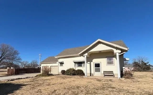 Incredible Opportunity on a Beautifully Maintained 2~acre parcel This stunning property boasts breathtaking views and wildlife and features 3 bedrooms and a full bath and fantastic garage space!! This charming property welcomes you with a lovely lawn and spacious 2 acres +\~ featuring a white farmhouse bungalow~style home spanning approximately 1275 sq feet, with a partial basement. Includes a double attached garage, garden shed approx. 12 x 10. Enjoy peaceful country living in this move~in~ready 3~bed, 1~bath home that seamlessly blends original details with numerous updates. Step onto the south~facing porch for morning coffees and sunset views of the beautiful Kansas landscape and wildlife The spacious living room boasts a custom south~facing arch window highlighting the beautiful countryside, open to the dining area and kitchen flooded with appliances remaining with the property. Th...