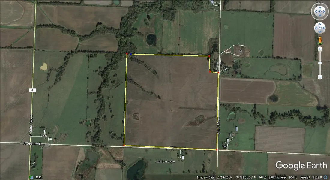 Research Parcel InformationFrom Sheldon Mo go east on B hwy to A go sough on A to N/E 90th rd go east 1 mile property on the north side