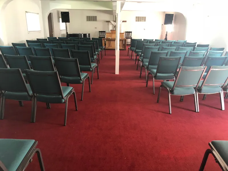 Church ready for it next congregation. This property includes 2 buildings, .47 acre, pews, podium, sound system, piano, 2 bathrooms, media control room and signage. There are 80 chairs included.