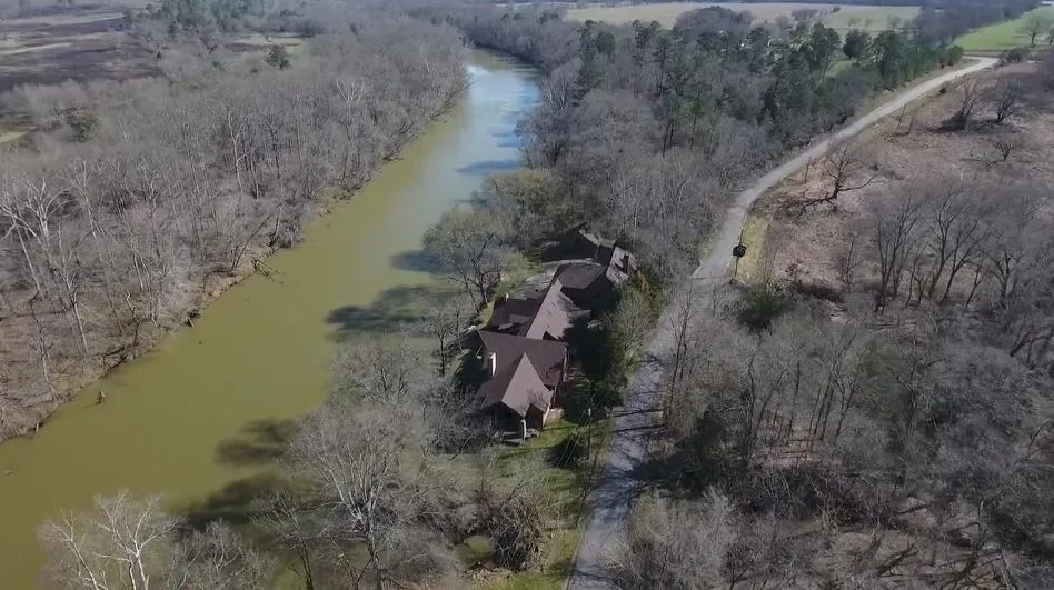 6 Bedroom and 6 baths, and 2 half baths, Riverfront Home. Peaceful Seclusion-Fishing-Kayaking-Canoeing-Water Sports-Lodge Style Ambiance- Possible Corporate Retreat. Through the Rock columns, the approach to the home is truly breathtaking. With the covered balconies, elevated decks and outdoor living space, each overlooking the river, this regal faade is one of a kind. NEW 50-year, architectural shingle roof(2017). Entire exterior, including decks and porches, has been painted within the year.
