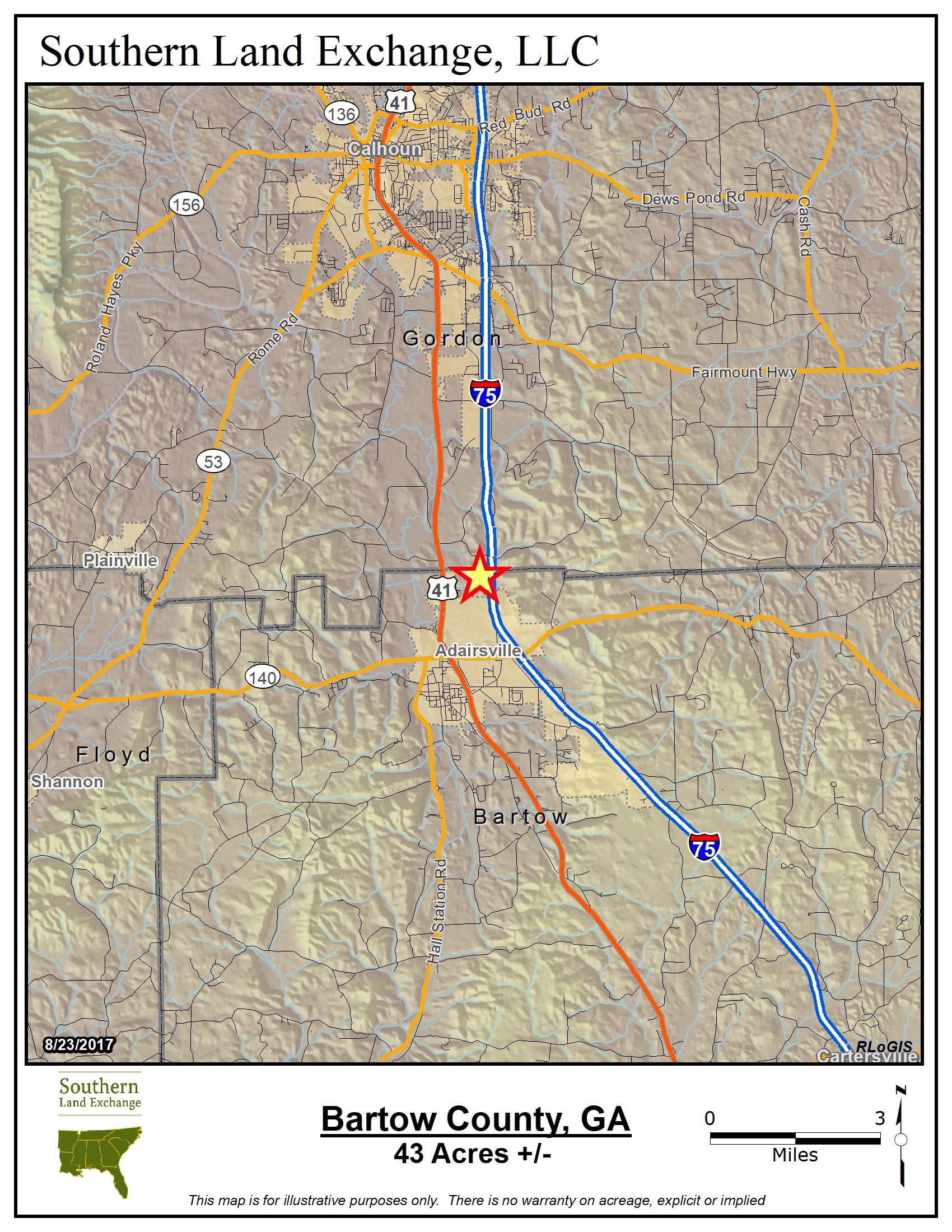 This small acreage tract is located just outside of Adairsville Industrial Park and is adjacent to I-75. Flat terrain, excellent opportunity for investment.