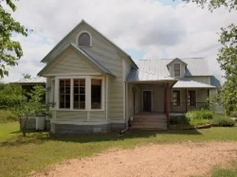 Green living at its best! Just minutes from downtown on 5.3 acres. Historic home (circa 1905 per owner) moved from Rabbs Prairie near La Grange has been beautifully renovated. Long-leaf pine floors, exposed wood walls, high beam ceilings, granite counters, stainless appliances, custom cabinets are just a few of the features.. Flexible floor plan. Master could be up or down. Footed tubs in both of the baths. Screened porch and open porches, rain collection system, solar panel heated salt water pool, raised vegetable gardens with deer proof fencing, separate guesthouse or studio waiting to be remodeled.