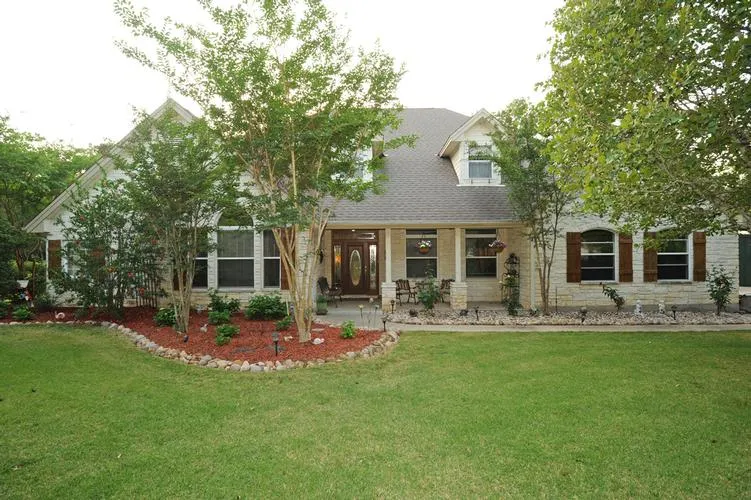 6+ ACRES-This property is great for entertaining with three covered porches w/ceiling fans.Pool has a weeping wall outlined by an Oklahoma Stone trimmed patio.The garden area has raised and lowered planting areas and sprinklers. 1200 SF metal building on slab can be used for boat storage or workshop. THIS GORGEOUS HOME IS 2/10 OF A MILE FROM LAKE BASTROP! 2 RV pads are also on the property.6 zones for HVAC(Heat Pumps). Two 50-gal water heaters. Oak staircase and window sills with wains coating throughout.