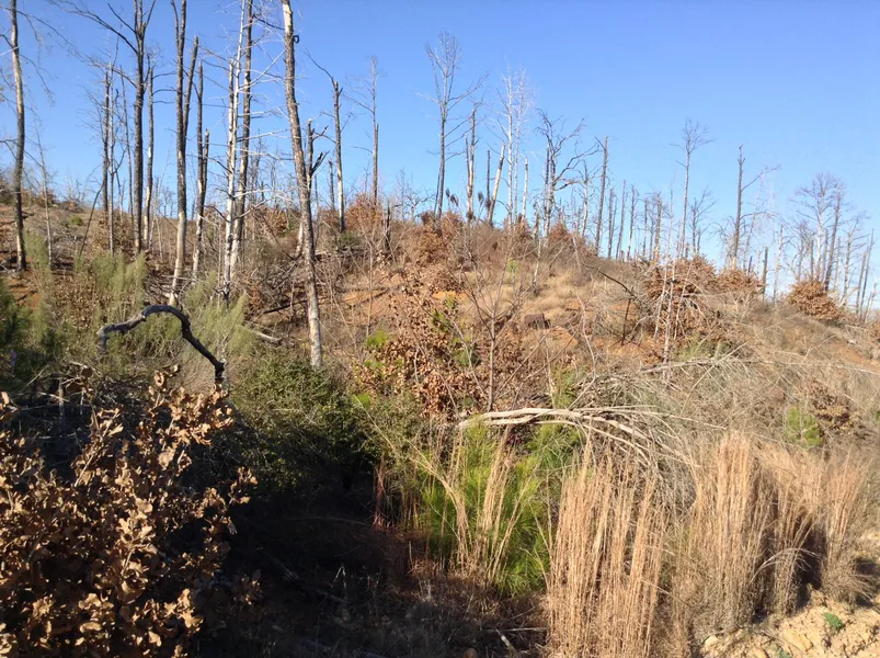 Has nice hill to build on & level land for larger build site on site. Great panoramic views. New construction nearby. ColoVista Country Club, Pine Forest County Club, 2 State Parks & historic Bastrop & Smithville just a few miles away. Just the smallest bit of each front corner in 100 yr floodplain; see Docs-GIS map from Bastrop Co. Look for sign at each corner. WEAR BOOTS, LAND UNLEVEL but very buildable. Owner willing to talk to buyers about helping clear lot of dead trees. Land affected by 2011 fire.