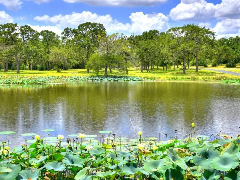 Beautiful stone home sits high on a hill overlooking 4-acre lake! ~ 50 gorgeous acres with scattered oaks is gated & private. 1/2 mile paved drive winds back to stunning home. Spectacular stocked lake with center island & lily pads. Features stone fireplace, cypress ceilings, gourmet kitchen with knotty alder cabinets & granite. Spacious master suite. Office/study. Covered porches & fenced yard. Metal barn (30x30) on slab with 12' carport. Cozy fire pit. Coastal & native grass pastures + mesquite, cedar & cactus!