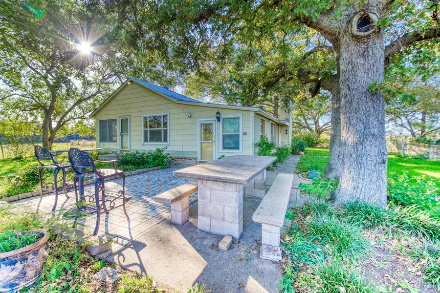 48.54 +/- ACRES. Enjoy your private oasis in this charming 3 bedroom, 2 full bath home. Light and bright home with natural wood accent walls throughout. Spacious living room with a high vaulted ceiling, ceiling fan, and cozy brick fireplace. Open eat-in kitchen with tons of cabinetry, built in open shelves, and stainless steel appliances, have your morning coffee looking out at the wildlife. Entertainers backyard with stunning pasture views. Beautiful pine trees, along with large oak trees. Perfect horse and cattle property with a pole barn, corrals, squeeze chute, and holding pens. Home being sold "as is". Build your dream home and use the existing home for a guest house. Restricted to No Mobile Homes.