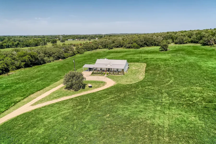 Gorgeous 2,120 square foot 3 BD/2.5 BTH farmhouse style home with open floor plan that sits on 16.5+/- acres. Ten minute drive to Hwy 290 and easy access to Austin, Bastrop, Hutto, Taylor, surrounding cities and airport. Amazing view of country living and spectacular sunrise/sunsets on the long front and back porches. Living area offers coffered cathedral ceilings with wood beams, plantation shutters, wood burning fireplace with shiplap and ornate tilework (mantle is negotiable) and hard tile; Kitchen has custom cabinetry with granite countertops, quality woodwork, stainless steel appliances, pantry; Dining has custom cabinetry with buffet granite countertops, crown molding and excellent for entertaining; Grand Primary Bedroom offers cathedral ceiling, plantation shutters, custom cabinetry desk with granite countertops, beautiful view of front pasture, two walk-in closets; Primary Bath...