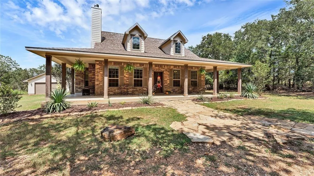 Nestled on a sprawling 26+ acres of serene privacy, this beautiful 2016 farmhouse is a true oasis just 6 minutes from the charming historic district of Smithville, Texas, and a short drive to the booming city of Bastrop. Immaculately maintained, the home features 3 bedrooms, 3 bathrooms, and an office, blending timeless farmhouse charm with modern conveniences. Inside, enjoy a modern kitchen, spacious living areas, and a large wraparound covered porch that invites you to bask in the tranquility of the peaceful countryside.