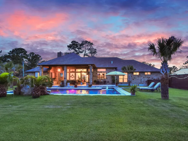 Pine Forest Estate! ~ Gorgeous custom-built stone home on 1.946 acres just minutes from town. Enjoy your own private retreat w/gated entrance, perimeter fencing, RV storage and fabulous outdoor entertainment area w/pool. A gourmet cook's kitchen with abundance of built-in knotty alder cabinets w/dramatic European pulls and granite counters. Each bedroom has an ensuite bath for privacy. Spacious game room w/wet bar + study. Huge covered porch for outdoor enjoyment. Energy-efficient home w/ foam insulation and tankless water heater. This community is within 2 hours of Houston and San Antonio and less than an hour to Austin and ABIA. Convenient to Bastrop and Buescher State Parks, Pine Forest and ColoVista golf courses, medical facilities and the Smithville Regional Airport