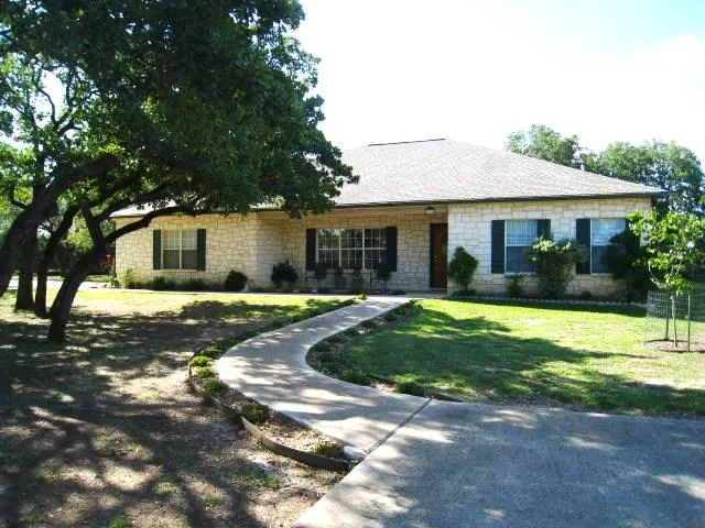 Charming 4/2 Home situated on over an acre boasting an open floor plan, High ceilings, Crown molding, Covered front and back porches, Walkin shower in master, Double vanities and Corian counter tops. Property also features a huge 40 x 30 RV Garage or place to store multiple vehicles, Garage also has heated/AC office. Come enjoy the River park, Pool, Playground and the Beautiful Texas Hill Country!