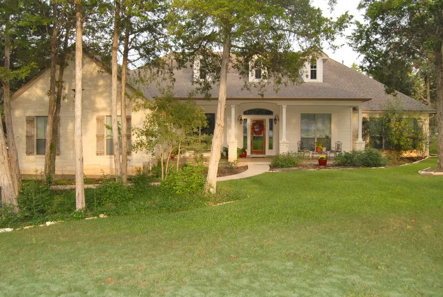 Colony Charmer! Custom built limestone with dormers in gated community. Amazing open floor plan with beam ceiling details, space saving pantry closets & spacious upstairs gameroom with 1/2 bath & wetbar. Enlarged master suite measures 26X19 with room for sitting area. Gourmet kitchen with granite, SS appliances & abundance of cabinets. Guest quarters or office with separate bath. Freshly painted interior. Large covered patio & hot tub. Seller has extended left fence 60' to add privacy. 12x16 storage bldg on back of lot.
