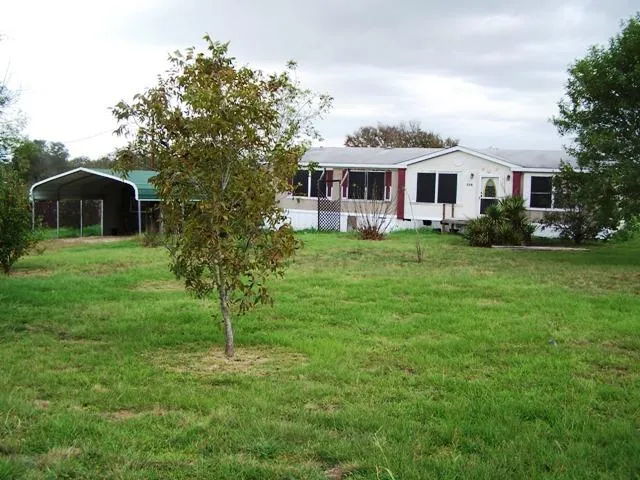 Doublewide needs cosmetic work, carpet and paint. Garden tub, separate shower, double vanity in master bath. Island kitchen. Carport with attached storage. Chicken yard with coop. Lot backs to FM 535.