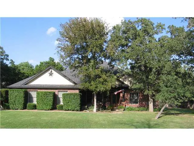 House sits back on lot so there is a deep front yard with native trees. This floorplan can be 3 bedroom with study in front of house or 4 bedrooms; master on one side of house, other bedrooms opposite side of house. Formal dining room can be used as second living space instead. Kitchen with all appliances opens to breakfast area (or use as main dining) and large family room with large brick corner fireplace. Kitchen has custom cabinets, large pantry, and tons of storage throughout the house. Two walk-in closets in large master bedroom and bathroom which includes garden jetted tub, separate shower and double vanity. Laundry room between kitchen and larger than typical double garage; can fit a 35' boat in there! Incredible build quality, thicker than usual slab, includes large covered back porch overlooking well-landscaped backyard with woodsy nature area at backend. Separate storage outbuilding. Walk in the front door and see all the way through to large family room windows to backyard. Clean, painted, great flooring and ready to move in.