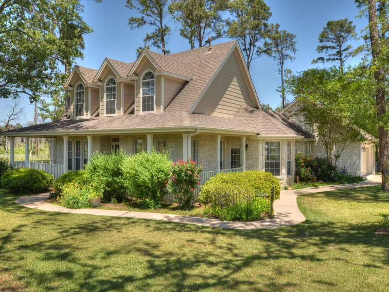 French Country Charm on serene corner lot ~ Location & curb appeal of this perfectly-sized lot offer a pleasing combo of elements- heavily treed, sprawling, peaceful. Soothing designer color palette, light and bright. Main level completely updated including kitchen & spa-like master bath. Granite & Quartz countertops, 2-story, crown molding, high ceilings, French doors, spacious rooms, covered porches. Hardwood thru-out living areas. Privacy w/o sacrificing amenities.
