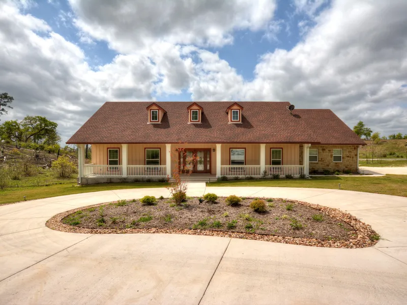 Texas Style Charmer! ~ Almost new, built in 2015 on 1.685 acre corner lot. Popular open floor plan which includes office/study, family room & spacious dining room. Huge kitchen with quartz counters w/ glass mosaic backsplash, center island w/ butcher block counter & extra storage. Abundance of oak cabinets. Engineered wood floors thru-out with ceramic tile in kitchen & baths. Dormers & covered front porch add charm. Circular drive in front, deck & chain link fence in back. Yard extends way beyond fence.