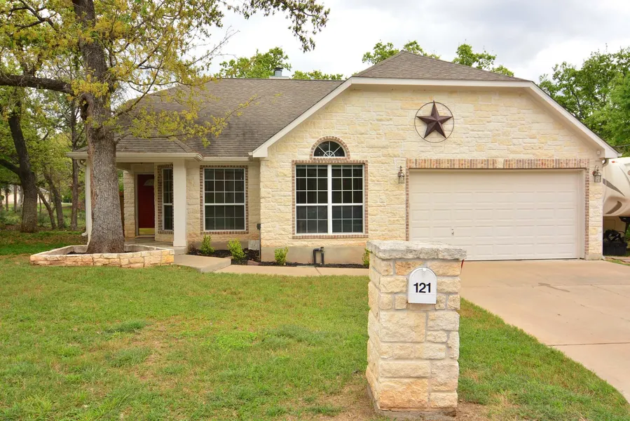 This spacious 2 story, 4 bedroom, 3 bath, 2,052+/- sf (BCAD) home is located near the end of a quiet cul-de-sac street, offering low traffic and lots of privacy! Step inside to updated tile & wood flooring, an open floor plan and an upstairs bonus living area with bedroom and bath. The master Suite is located on the main level and is complete with a beautiful tile tub and walk in shower. The kitchen leads out to a large wooden deck, looking out to an open backyard with an intermittent creek and mature trees that provide a great amount of shade! The AC unit was replaced on June 20th, to a 4 ton unit, just in time for summer, ensured to keep you cool! The property also comes with a storage shed in the back yard. Centrally located in Tahitian Village, (away from the area's in Tahitian Village that were reported to have been affected by rains and flooding) , it is just minutes away from Pine Forest Golf Club and the Colorado River! Come Relax and Enjoy!!