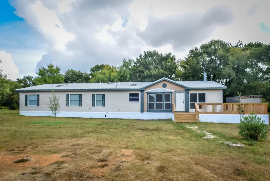 Updated Home on 1.978 acres (per appraisal district) with many trees for peaceful views and tranquility. Enter onto the new deck to the front door and side door. Nice kitchen with white painted cabinets and island with breakfast bar. Home has breakfast room with bay window, den with stacked stone fireplace and sliding doors to new deck, as well as Formal living and dining rooms. The master bedroom features an owners suite and huge en suite bathroom with double vanities and walk in closet. Three bedrooms and two bathrooms on opposite end of the home. This home has lots of room to roam. Septic system, AC and plumbing installed recently. Metal roof. Make your appointment today to see this home.