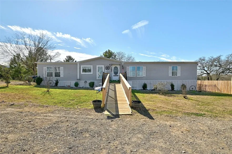 Special Financing Options Available -- Please Inquire! Welcome to 417 Green Valley Dr, Bastrop, TX 78602. Located on 12.79 acres of fully fenced land, this 2016-built 2,100 sqft manufactured home offers 4 bedrooms, 2 bathrooms, and an open floor plan. Features include an all-electric setup, wheelchair-accessible ramp, and a covered back patio/deck perfect for enjoying the serene surroundings. A storage shed and mature trees complete this property, making it ideal for those seeking space and privacy. And you can add quick access to creek for fishing! With plenty of room to expand or build, the possibilities are endless. Whether you re looking for a homestead, recreational space, or room for future projects, this property is a blank canvas ready for your vision.