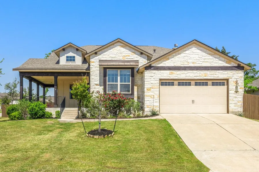 **Welcoming offers** The Colony community in Bastrop is a gated master-planned oasis where modern living meets natural beauty. Step into this exquisite former model home by Sitterle, which embodies sophistication and style at every turn. Surrounded by mature trees, the home offers a serene and secluded ambiance. The inviting front porch welcomes you into an interior with soaring ceilings and an open layout designed for modern living. Admire the custom barn door and oversized windows that flood the space with natural light. The kitchen is a culinary masterpiece featuring a grand L-shaped island, ample cabinetry, and plenty of storage. The primary suite is a luxurious sanctuary, featuring an impressive California closet built-in that caters to all your organizational needs. Outside, the expansive back porch, complete with a striking rock fireplace, offers an idyllic retreat for relaxing and taking in the natural beauty of the towering trees. Nestled on a generous premium lot that backs onto a greenbelt and situated on a tranquil corner, this former model home is a true gem. Numerous trees enhance privacy and create a quiet, park-like setting, making this property even more captivating. Beyond the home's exquisite design, The Colony community offers many amenities, including a community center, fitness center, playground, pond, pool, trails, and much more. This luxurious living and exceptional community features make this home a perfect blend of comfort, convenience, and natural beauty.