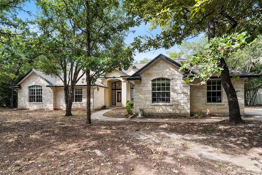 Nestled on 1.37 acres surrounded by lush trees, this stunning single-level stone home offers timeless charm. Elegant details include arched walkways, a formal dining room with a chandelier, and wood-style and tile flooring throughout. Abundant windows fill the space with natural light. The spacious family room features built-in cabinets and a cozy fireplace, while the kitchen offers ample cabinetry, a large island, built-in desk, and a light & bright dining area overlooking the private backyard. The primary suite impresses with soaring ceilings, a ceiling fan, oversized windows, and a spa-like bath with double vanities, separate tub and shower, and a huge walk-in closet. Enjoy outdoor living on the covered back patio with a ceiling fan perfect for relaxing or entertaining in your own private retreat. Conveniently located minutes from Highway 290, 5 miles from downtown Elgin, 13.8 miles f...