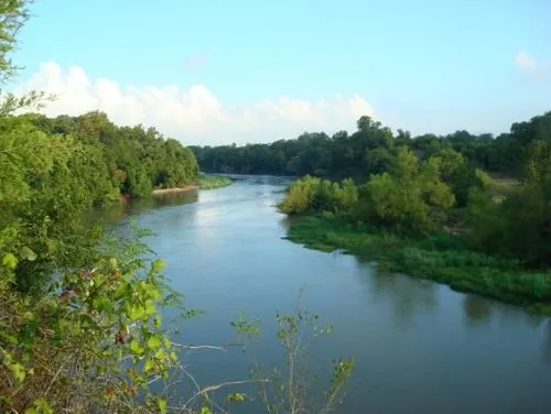 The property is located on the high bank of the Colorado River 7 miles west of Smithville. With 2000 feet of river frontage, there are magnificent long views of the river and access from a sandbar on the west end of the property.