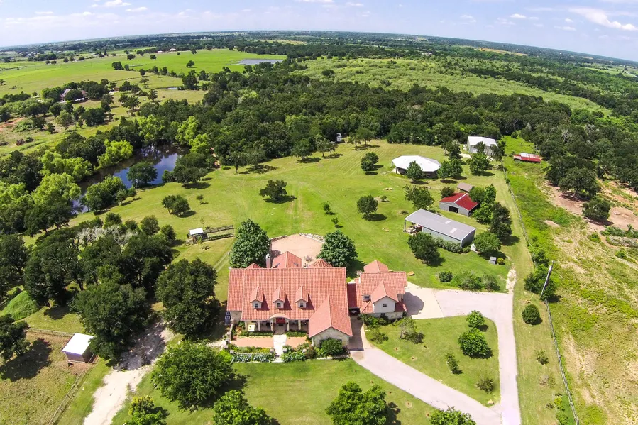 Walking through the property, one is captured by the beauty of the land. Large, towering oak trees shade beautiful pasture. There is a great 3-acre meadow of wildflowers behind the pond. This luxury estate has a lot to offer, and is only 30 minutes to Austin. It is just over an hour to College Station, TX.