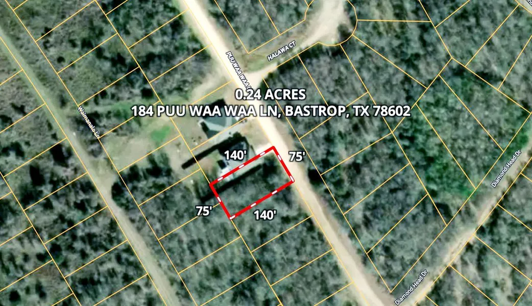 This 0.24 Acre lot is located in beautiful Tahitian Village, a deed restricted community ready for new home construction. Build your dream home here, close to the Colorado River, good schools, has a golf course, minutes from shopping in downtown Bastrop, and very close to Buescher or Bastrop State Park. This lot is also 41 minutes away to Austin. Neighbors nearby ensure close electrical and water connections. This neighborhood is growing quickly with homes being built all over. Get your lot today. Lots are restricted to new built homes with a minimum 1,200 sqft. Although there are no POA dues, there is a $204 annual road maintenance fee, which is part of the BCWCID #2 (the Water District). TVPOA charges a one hundred dollar per lot transfer fee. For more details, please call 512-321-1145.