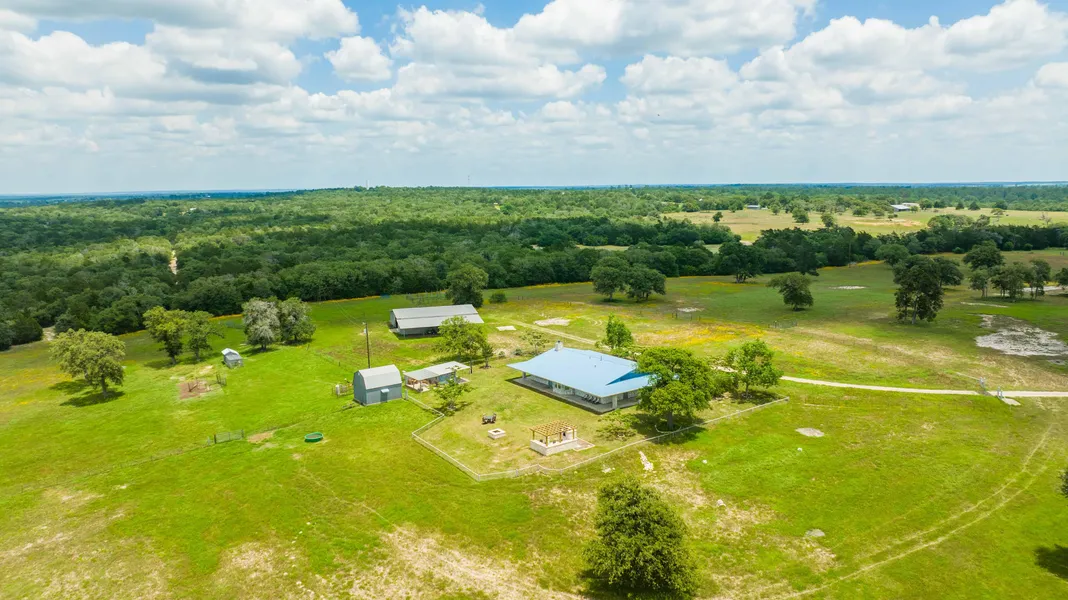 The Red Rock Ranch is a rare opportunity to own a beautifully secluded property located just 50 minutes from downtown Austin, as well as less than 30 minutes from the bustling city of Bastrop, TX. The estate features a quaint hilltop homesite sitting atop of 52 +/- acres of heavily maintained sprawling hillside and rolling pastures. The homesite features a 2,450 sq ft home along with a beautiful detached outdoor bar/fireplace and pizza oven, a 1,100 sq ft covered parking area, and a large 3,000 sq ft equipment/storage barn with a 650 sq ft air conditioned shop. The detached outdoor bar and fireplace provide breathtaking sunset views overlooking the beautiful landscape of Bastrop County. The property itself has been very well maintained over the years with continuous brush clearing, pasture restoration, and shredding, allowing for the hilltop homesite to have 360 views over the beautiful rolling landscape. Due to the secluded nature of the estate as well as the continuous land maintenance, this has allowed for the property to become a safe haven for local wildlife including whitetail deer, Rio Grande turkey, dove, and the occasional wild hogs. It is not uncommon to see numerous herds of deer as well as flocks of turkey strolling through the pastures below the home in the mornings and evenings. The Red Rock Ranch is a beautifully unique homesite ranch perfect for those wanting the closeness and amenities of the city, with the peaceful tranquility of living in the country.