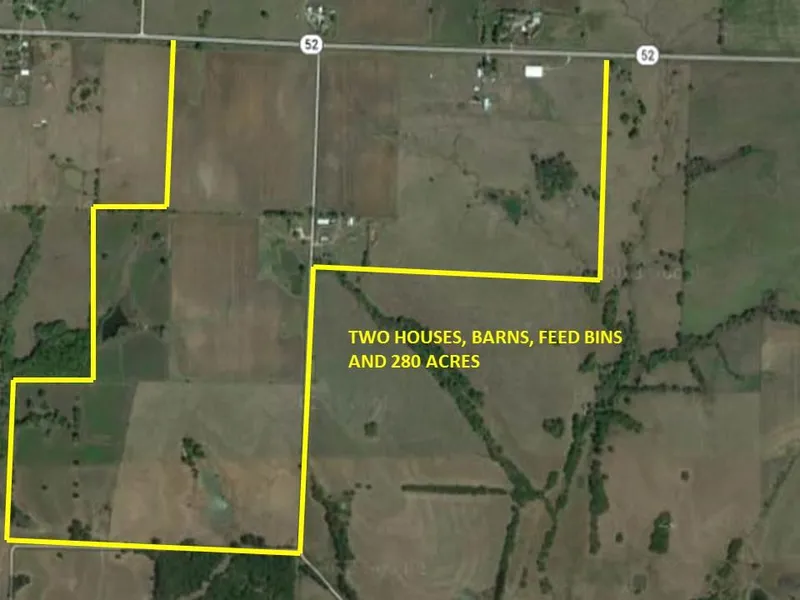 Turn Key horse or cattle operation. 285 acres with two homes. Gorgeous custom built home and a rental home. Lots of outbuildings including barn, implement barn complete with large custom grain bins. Barn has square tubing stalls along with kitchen, office, restrooms, clipping room and sale ring.
