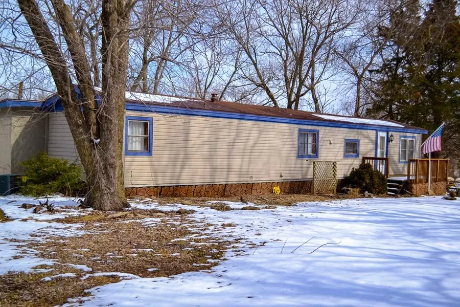 Situated on the north end of town just a couple blocks from the Rich Hill school, this 1,325 square foot mobile home has a lot to offer. As you walk in the front door, you'll enjoy the open concept living room with newer laminate flooring and plenty of windows for natural lighting. This space flows into the kitchen/dining area with a wrap around counter and bar seating, plus lots of cabinet space and room for cooking and entertaining. The original floor plan included two bedrooms and one bath, but a remodel addition was added to the home and provides an additional full bath, mud room, and large concrete safe room that would make a great office space, climate controlled storage, or could even be repurposed into an additional bedroom or kid's playroom. The master bath features his & hers dual sinks, a garden tub, and shower, as well as a utility room tucked neatly into one end of the room. The master bedroom features a large closet, built in dresser with tons of storage, and newer laminate flooring. Outside you'll find just as much to love. A multi-level deck overlooking the pond invites you to fire up the grill, kick back, and relax with friends, and an old concrete and stone foundation is the perfect location for a fire pit, gazebo, or landscaped patio to expand your outdoor living space. Next to the home is a 400 square foot garage/workshop where you can set up your tools and safely store items out of the weather and locked up tight. But that's not all - between the home & garage is a cozy little patio area that's sheltered & shaded, complete with a natural stone walking path, clear panel roof, and chiminea. Out back, the pond is reportedly the site of an old quarry, and would be the perfect place to relax after work with a rod & reel in hand, or for a refreshing summertime dip. And if this weren't already enough, two additional outbuildings are perfect for more tool & equipment storage, or maybe even a dog kennel or chicken coop. You'll get all this on a huge 3.2 acre (m/l) lot, with plenty of room to build another home or just give the kids and pets plenty of room to play. This is a great little cozy home on a remarkable large lot. If you'd like to see it, call Scott Sudkamp today at 417-321-5427!