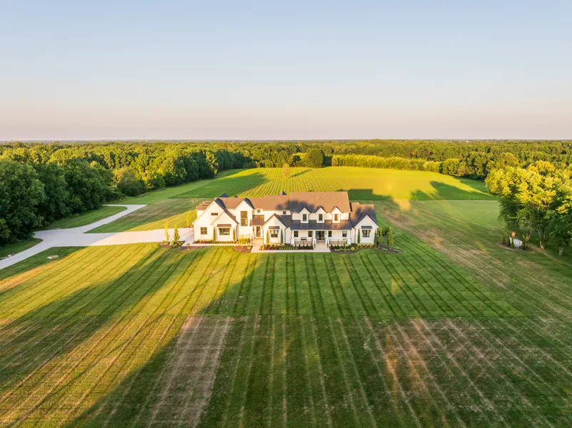 Situated south of Kansas City, this one-of-a-kind luxury estate offers an exceptional blend of architectural sophistication, resort-style amenities, and peaceful country privacy. Set on approximately 12 private acres, the newly constructed 9,187 square foot custom-built residence reflects uncompromising attention to detail throughout.