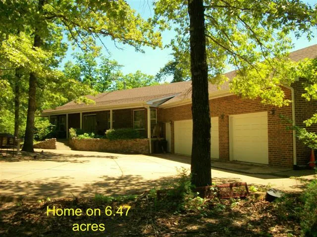 BEAUTIFUL ALL BRICK 4 BR 2 BA home on 6.47 acres M/L, at the end of the road, with a large (29' X 40')attached 3 car garage, newer roof, city water and a solar powered well for the many hydrants throughout the yard. Basement has a wood stove. Home is nestled in the trees at the edge of town. $224,900.