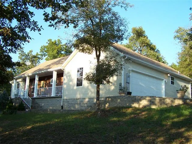 TOTAL SECLUSION and only minutes from town. Custom 3 BR 3 BA home with laminate and tile flooring, vaulted ceilings, jetted tub and shower in master bath, split bedroom plan, deck, covered front porch, and finished walk-out lower level with bath. Security system and propane whole house generator are included in price. Situated on 2.24 acres m/l of a parklike setting loaded with deer and wild turkey. $259,500.