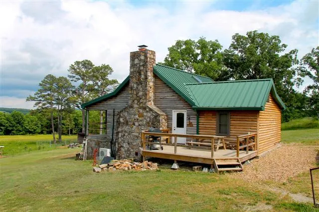 LOG CABIN WITH 17.94 ACRES M/L! This hard to find settingof woods and pasture with a view that sits on almost 18 acres has a 2 BR log cabin that features an open concept, bamboo flooring, bonus loft,a massive stone fireplace and a newer central heat pump. There is also a 24' X 32' detached garage and the property is fenced and cross fenced. Priced at $149,900.