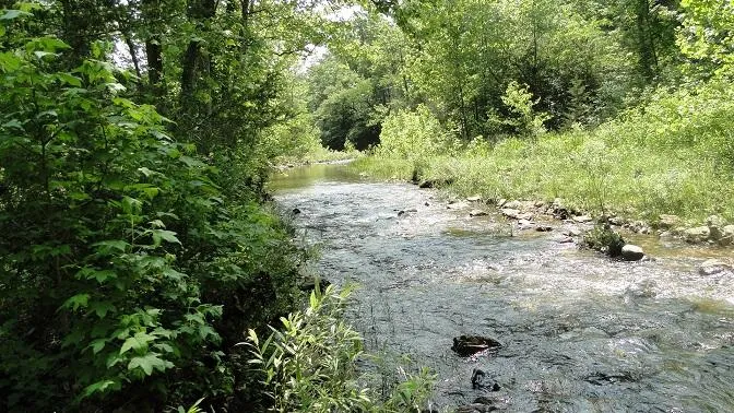 This vacant tract of land joins the Ozark National Forest in north central Arkansas. The Arkansas recreational land is great for fishing, hunting and camping. This property, which lies in Baxter County, is close to the White River, Lake Norfork and Mountain Home. There are 70 acres with a clear year round mountain stream running through the property for a quarter mile. The property adjoins the Ozark National for a quarter mile. This is a very scenic parcel with good county road frontage and lots of water. The vacant land has very mature timber as well as cleared meadows of bottom ground along the creek. The back of the property that joins the Forest Service land is up on a high ridge with a good view. This property is teeming with wildlife such as turkey, deer and a few black bear. The White River is only a half mile away and there is a boat ramp where you can launch a boat for some of the best trout fishing in the United States. The White River is actually within walking distance, and you can fish from the bank at the ramp. If you are looking to be self-sufficient. then this property has it all, year round water, timber, wildlife and thousands of acres of Ozark National Forest to roam on. This 70 acres for $209,500 Call David Sharp at 870-368-4155.